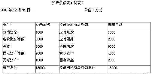 1.已知:某公司2007年銷售收入為20000萬元,銷售凈利潤率為12%,凈利潤的60%分配給投資者。2007年12月31日的資產負債表(簡表)如下: