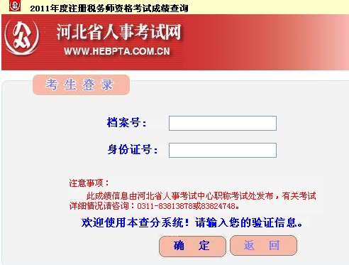 河北2011年注冊稅務師考試成績查詢已開通