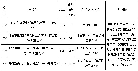 5.土地增值稅:唯一的超率累進(jìn)稅率(四級),必須記住★