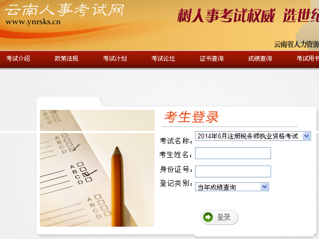 云南省2014注冊稅務師成績查詢入口
