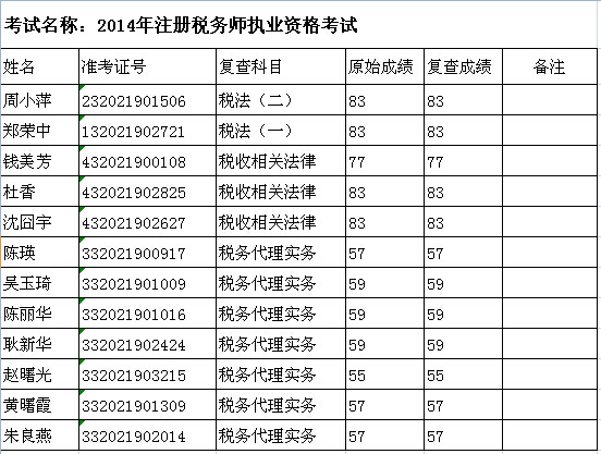摘要 江蘇無錫2014年注冊稅務師考試成績復查結果