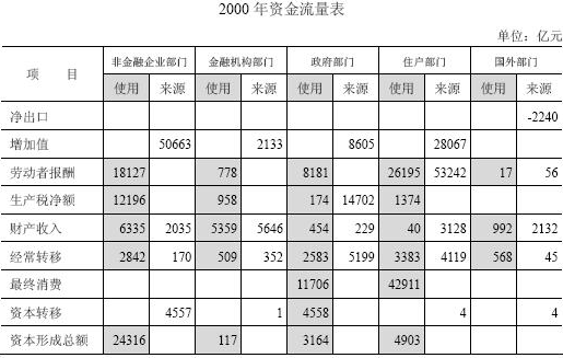(二)以下是2000年全國資金流量表的部分資料,請根據(jù)這些資料對反映該年宏觀經(jīng)濟(jì)運(yùn)行的一些重要指標(biāo)進(jìn)行計算和分析,回答有關(guān)問題。