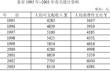 (三)為分析某市城鎮(zhèn)居民1995年――2003年人均可支配收入和人均消費(fèi)性支出之間的關(guān)系,取得如下統(tǒng)計資料: