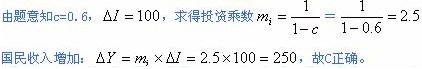 21.根據(jù)投資乘數(shù)原理,當邊際消費傾向c=0.6時,如果投資增加100,國民收入最終增加( )。
