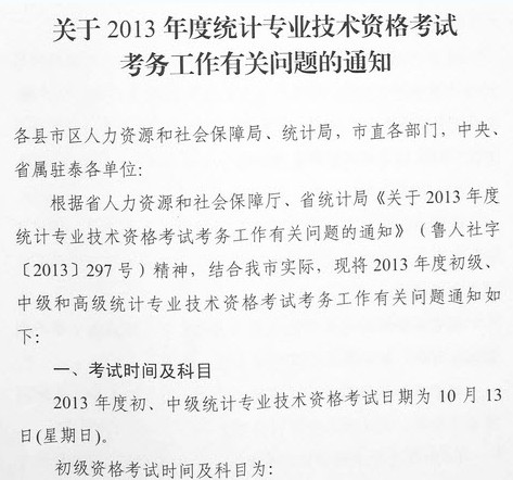 泰安市2013年統(tǒng)計(jì)師考試報(bào)名時(shí)間7月22日-31日