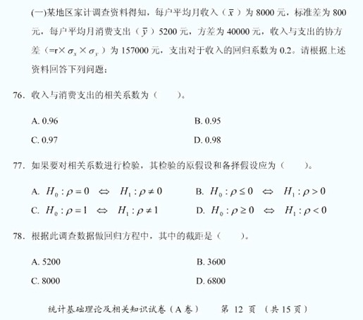 摘要 2012年中級(jí)統(tǒng)計(jì)師《統(tǒng)計(jì)基礎(chǔ)理論及相關(guān)知識(shí)》考試真題及答案