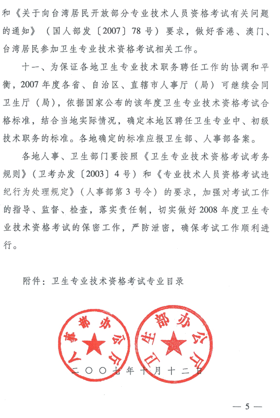 關(guān)于2008年衛(wèi)生專業(yè)技術(shù)資格考試有關(guān)問題的通知