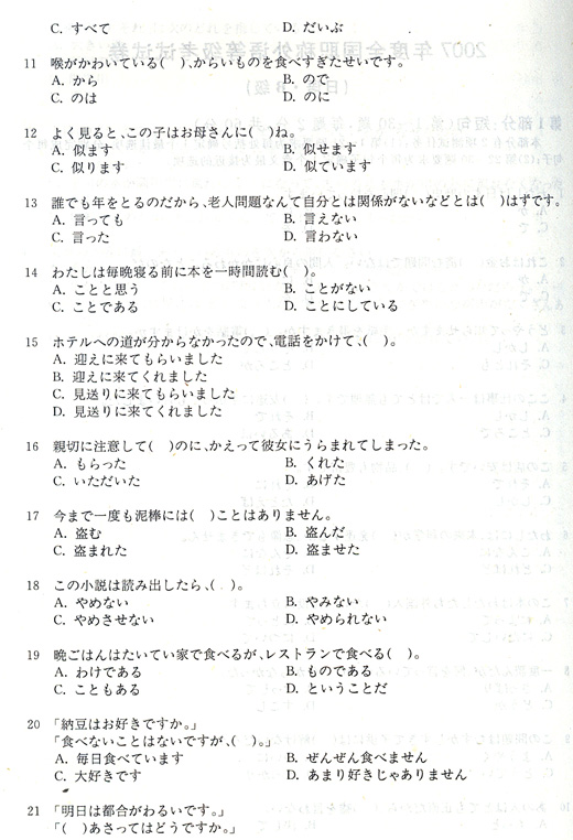 - 2016年職稱日語考試歷年真題精選習題第三套2015-10-14