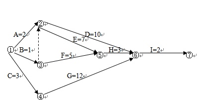 (五)已知某個項目的網(wǎng)絡(luò)圖如下,該項目包含九個活動過程即A、B、C、D、E、F、G、H、I,并且該項目的活動關(guān)系與資源耗費(fèi)如圖所示(單位:天)。