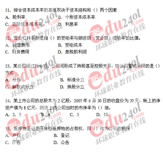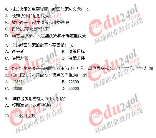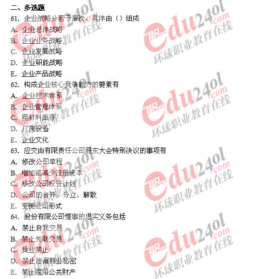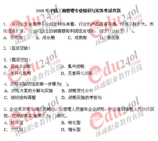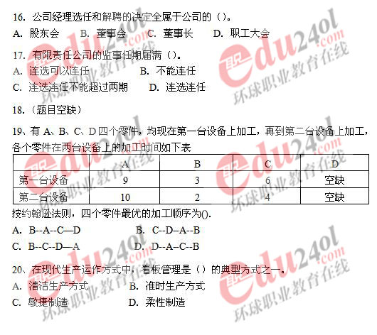 2008年經(jīng)濟(jì)師考試已于11月1日結(jié)束,環(huán)球網(wǎng)校及時整理了2008年經(jīng)濟(jì)師考試真題和答案,歡迎廣大考生核對考試答案,敬請廣大經(jīng)濟(jì)師考生關(guān)注。以下是中級工商管理專業(yè)知識與實務(wù)考試真題: