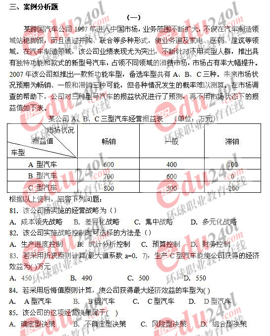 2008年經(jīng)濟(jì)師考試《中級工商管理》真題