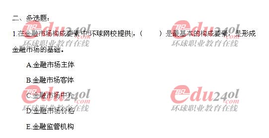 44. 金融市場(chǎng)構(gòu)成要素中金融市場(chǎng)主體與客體是金融市場(chǎng)形成的基礎(chǔ)。金融中介與金融市場(chǎng)價(jià)格是重要組成部分。
