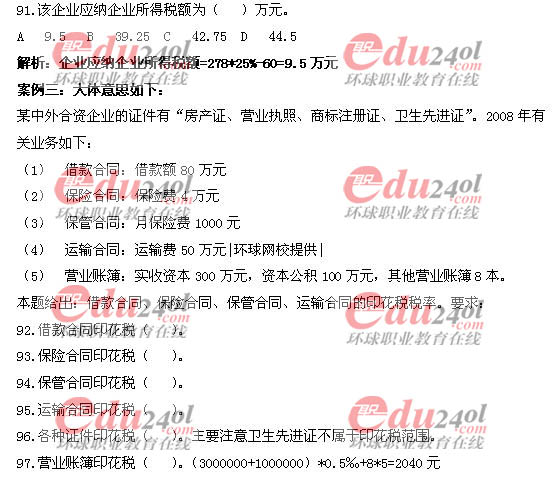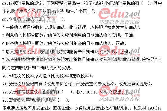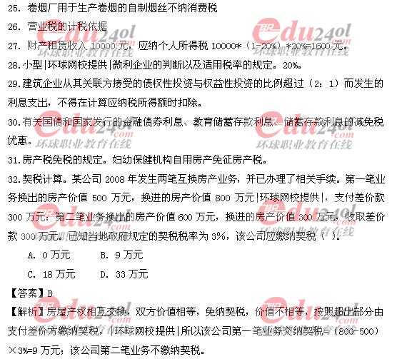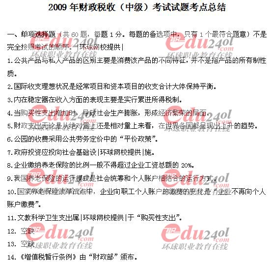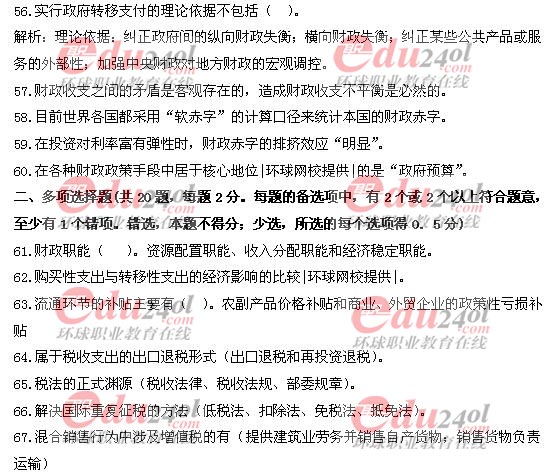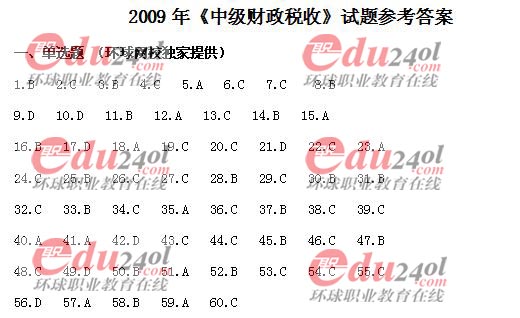 2009年經濟師考試中級財政稅收真題答案及解析