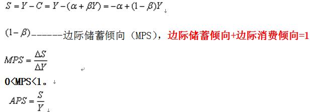 根據上面得出的消費函數的公式,以及消費與儲蓄的關系,我們可以推導出儲蓄函數的公式: