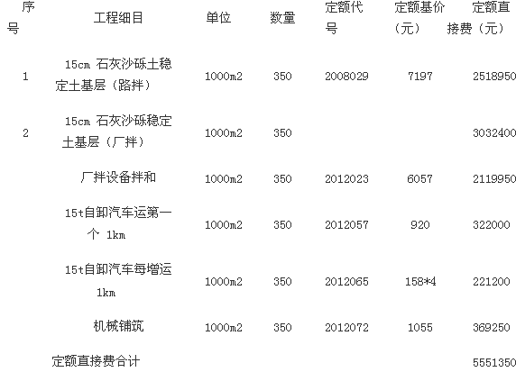 1.按交通部頒布的1996年定額基價(jià)計(jì)算石灰沙礫土基層的標(biāo)底費(fèi)用