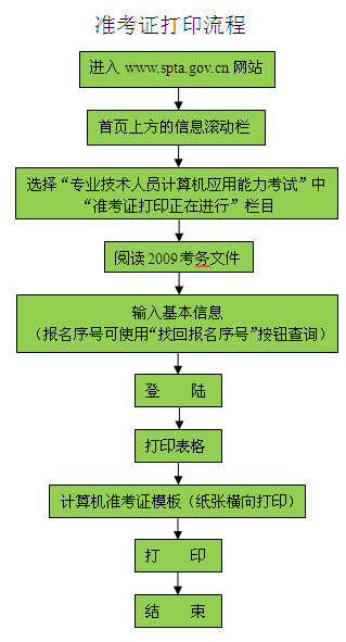 2010年下半年上海第三次職稱計算機考試準考證可以開始打印,打印時間為2010年10月15日-19日。完成網上報名的人員應于上表規定時間在本網站下載并打印準考證,操作流程請參考《準考證打印流程》(附件)。