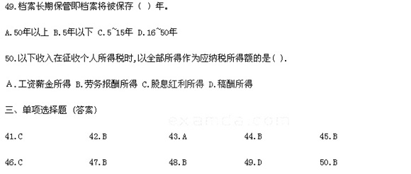 三、單項選擇題(41~50題。每題1分,滿分10分。請將正確答案選出來,把相應(yīng)的字母填入括號中)