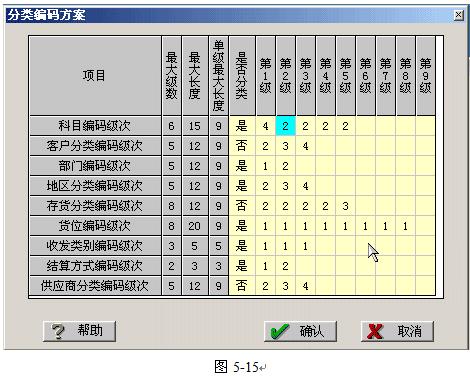 編碼方案是指設置編碼的級次方案,這里采用群碼方案,這是一種分段組合編碼,每一段有固定的位數。編碼規則是指分類編碼共分幾段,每段有幾位。一級至最底層的段數稱為級次,每級(或每段)的編碼位數稱為級長。編碼總級長為每級編碼級長之和。