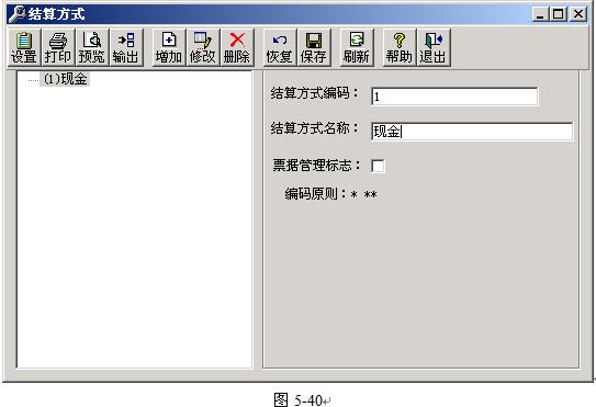 結算方式設置主要包括:結算方式編碼、結算方式名稱、票據管理標志等。票據管理標志是軟件為輔助出納對銀行結算票據而設置的功能,類似與手工系統中的支票登記簿的管理方式。