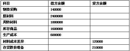 “存貨”項(xiàng)目的金額=140000+2400000+1800000+1600000+600000-120000-210000