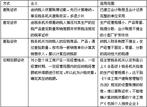 A查賬征收 B 查定征收 C 查驗征收 D 定期定額征收