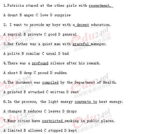 當前位置: 首頁 > 職稱英語 > 職稱英語歷年試題 > 2010年職稱英語真題之綜合類B級詞匯選項