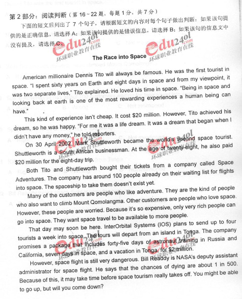 - 職稱英語綜合C閱讀判斷真題及答案2017-07-03