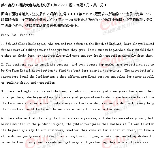 2010年職稱英語真題之綜合類B級概括大意