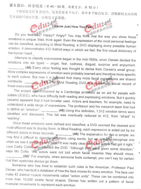 2010年職稱英語真題之理工類A級補全短文
