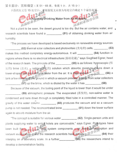 當前位置: 首頁 > 職稱英語 > 職稱英語歷年試題 > 2010年職稱英語真題之理工類A級完形填空