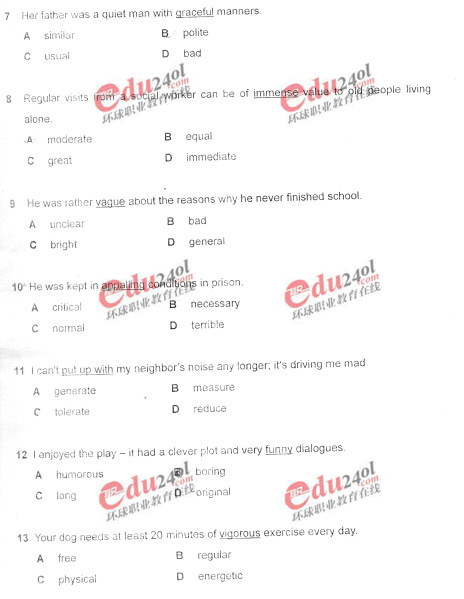 當前位置: 首頁 > 職稱英語 > 職稱英語歷年試題 > 2010年職稱英語真題之衛生類A級詞匯選項
