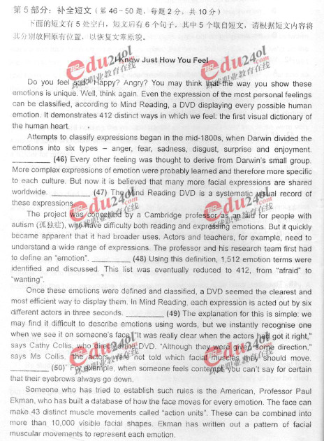 當前位置: 首頁 > 職稱英語 > 職稱英語歷年試題 > 2010年職稱英語真題之衛生類A級補全短文