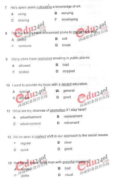 - 職稱英語(yǔ)真題綜合類B級(jí)單項(xiàng)選擇題真題講解2017-04-27