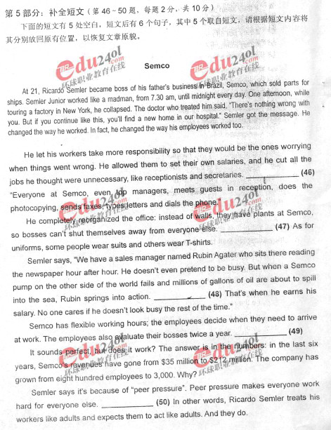 當前位置: 首頁 > 職稱英語 > 職稱英語歷年試題 > 2010年職稱英語真題之衛生類B級補全短文
