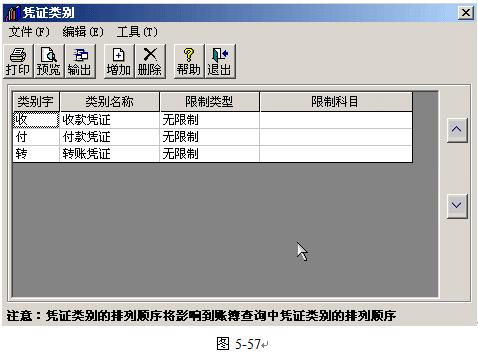 (四)在錄入憑證之前,應進行憑證類別的設置;已使用的憑證類別不能刪除,也不能修改類別字;如果限制科目為非末級科目,則在制單時,其所有下級科目都將受到同樣的限制。