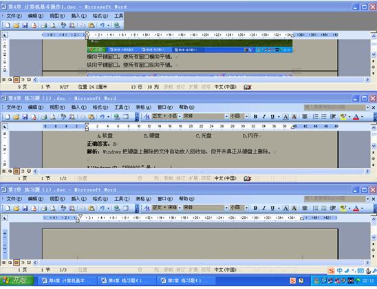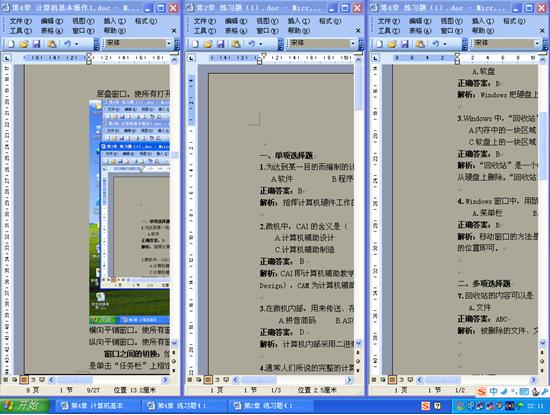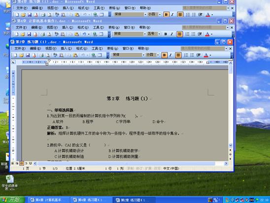 窗口之間的切換:如果同時打開多個窗口,需要在多個窗口之間進行切換,通常的操作是單擊“任務(wù)欄”上指定的任務(wù)按鈕,即打開相應(yīng)的任務(wù)窗口,使之成為當(dāng)前的活動窗口。如果要切換的窗口顯示在桌面上,只需將鼠標指向該窗口的任何位置,單擊鼠標,即可將此窗口切換為當(dāng)前活動窗口。