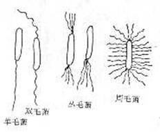 數(shù)量與部位:① 單毛菌② 雙毛菌③ 叢毛菌④ 周毛菌