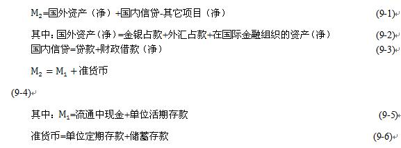 從(9-4)式可知,從廣義貨幣M2的構成方面分析:一是M1的變動,二是準貨幣的變動。如果是M1的變動影響大,可進一步分析流通中現金及單位活期存款及影響其變動的因素;如果是準貨幣的變動影響大,可進一步分析單位定期存款和儲蓄存款及影響其變動的因素。