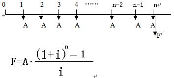 F=A(1+i)0+A( 1+i)1+A( 1+i)2+……+A(1+i)n-2+ A(1+i)n-1