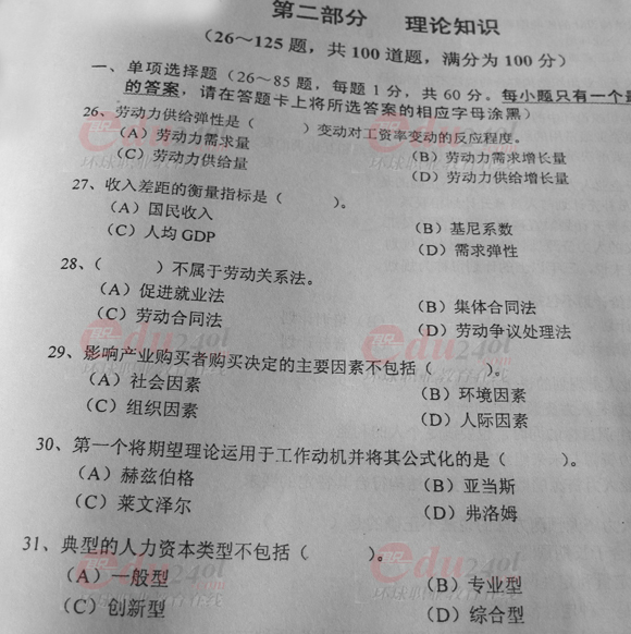 2011年11月人力資源管理師考試二級理論知識考試已經結束,環球網校在第一時間為考生及學員整理了真題,網校預祝學員們能夠取得好成績。
