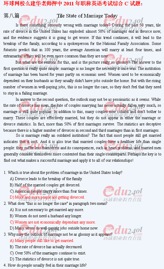 當前位置: 首頁 > 職稱英語 > 職稱英語模擬試題 > 環球網校2011年綜合C押中試題與試卷對照