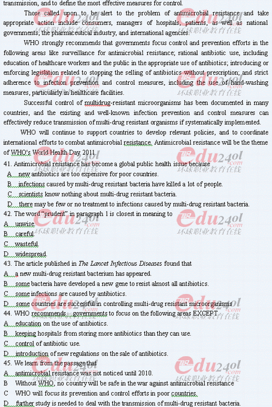 - 職稱英語理工類閱讀理解練習七2017-06-12