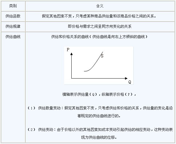 考核內容:市場供給的含義及其影響因素,供給規律和供給曲線的含義和內容。