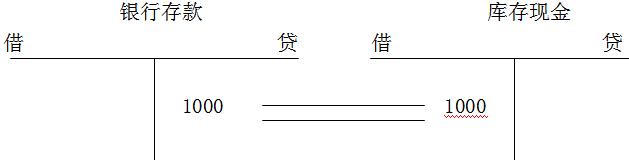 如: 從銀行提取庫存現金1000元備用,該筆業務導致庫存現金增加1000元,銀行存款減少1000元。“庫存現金”“銀行存款”均屬于資產類賬戶。增加記借方,減少記貸方。