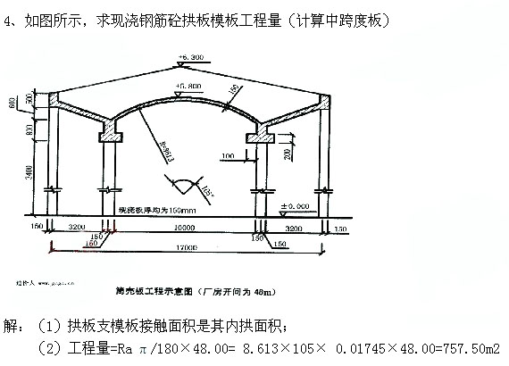 求現(xiàn)澆鋼筋砼拱板模板工程量