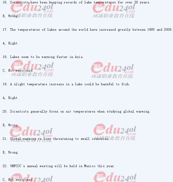 - 職稱英語綜合C閱讀判斷真題及答案2017-07-03