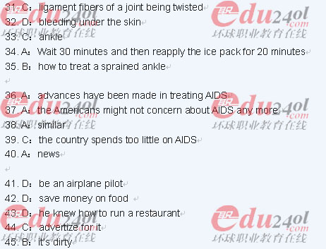 2011年職稱英語考試試題答案--衛生類C級(代碼32)