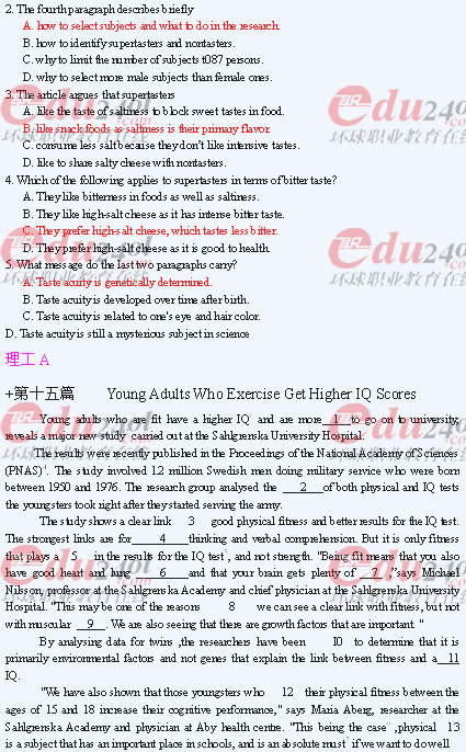 完型填空: Young Adults Who Exercise Get Higher IQ Scores