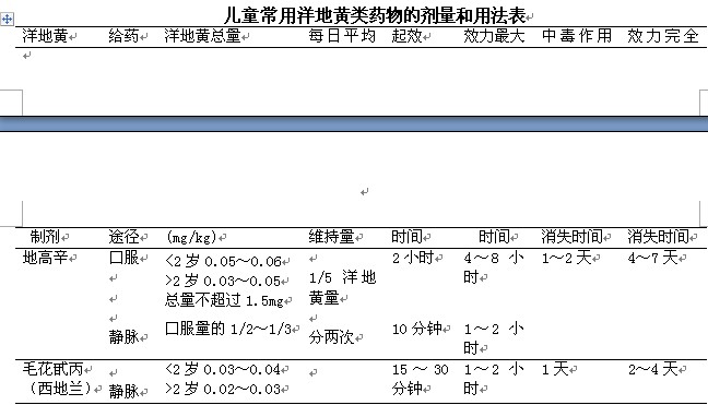 (3)洋地黃類藥物:洋地黃可增加心肌收縮力、減慢房室結(jié)的傳導(dǎo)、使心臟對(duì)迷走神經(jīng)的敏感性增加。兒科常用的洋地黃制劑有地高辛和西地蘭。地高辛可供口服及靜脈注射,口服吸收良好,起始作用快,蓄積少,為兒科治療心力衰竭的主要藥物。西地蘭僅供靜脈注射。 兒童常用洋地黃類藥物劑量和用法見下表。