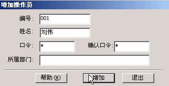 1.增加操作員。增加操作員時,必須指定操作員編號、姓名、定義并確認操作員口令。
